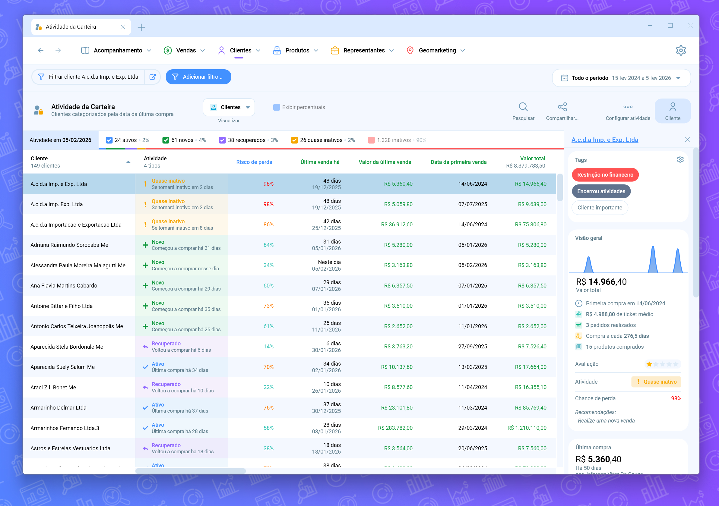 Nunca foi tão fácil analisar a saúde de sua carteira de clientes.